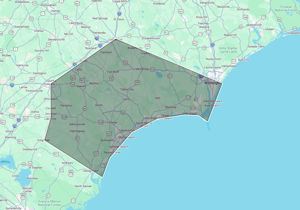We provide professional, reliable service across a wide regional footprint, covering everything from the shores of Oak Island, NC, to the historic Lowcountry of Georgetown, SC, and the heart of the Pee Dee in Florence, SC. Whether you’re on the coast or inland, our team is dedicated to bringing high-quality local expertise directly to your doorstep